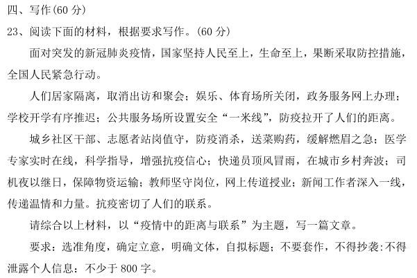 二、2020年新高考一卷语文作文题目