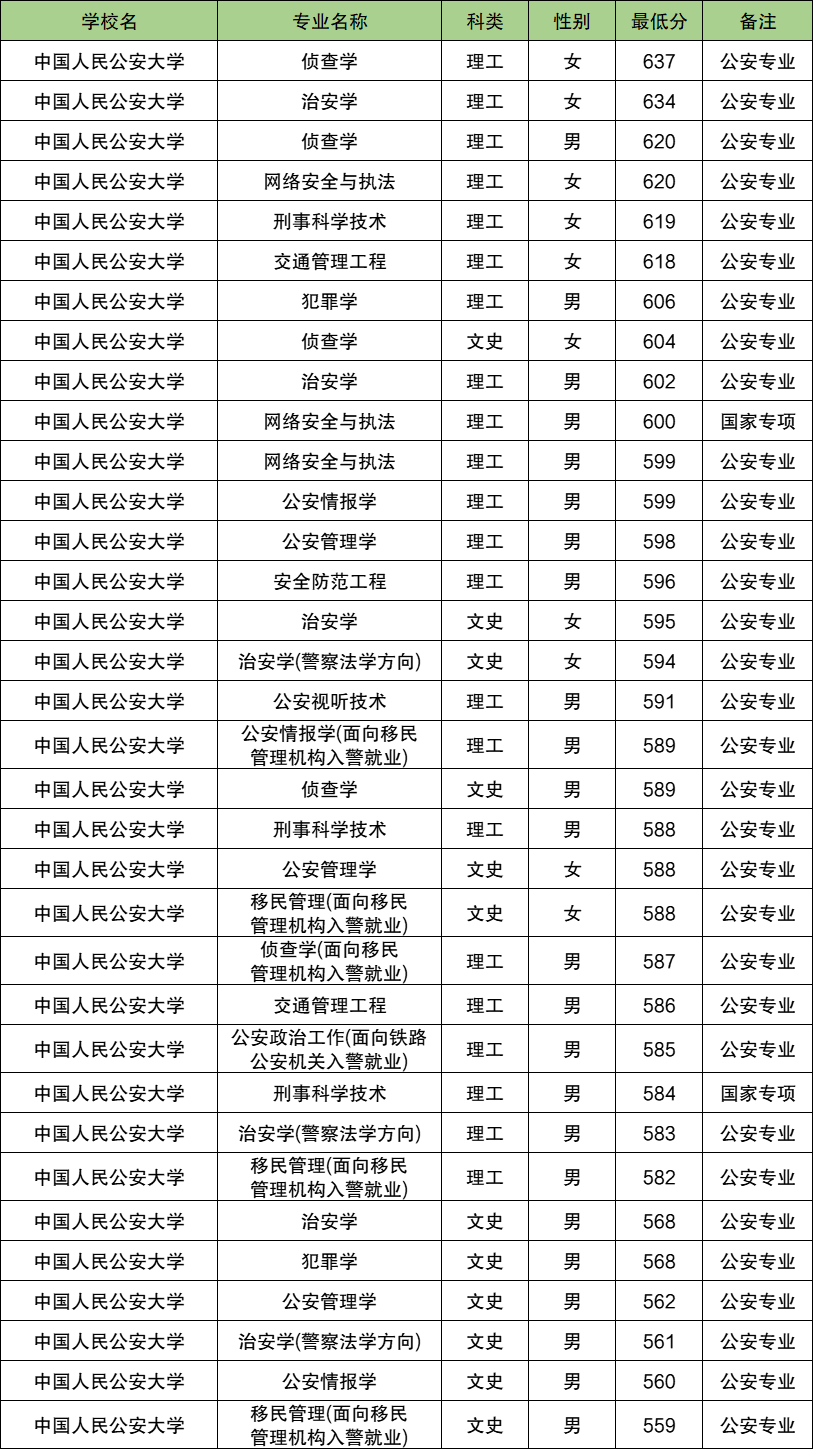 | 南京警察学院 | 理工 | 男 | 554 | 缉私 |