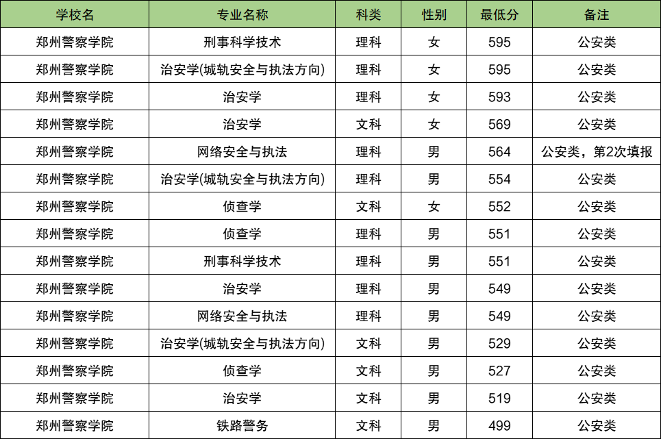3、郑州警察学院:在内蒙古文科最低499分、理科最低549分。