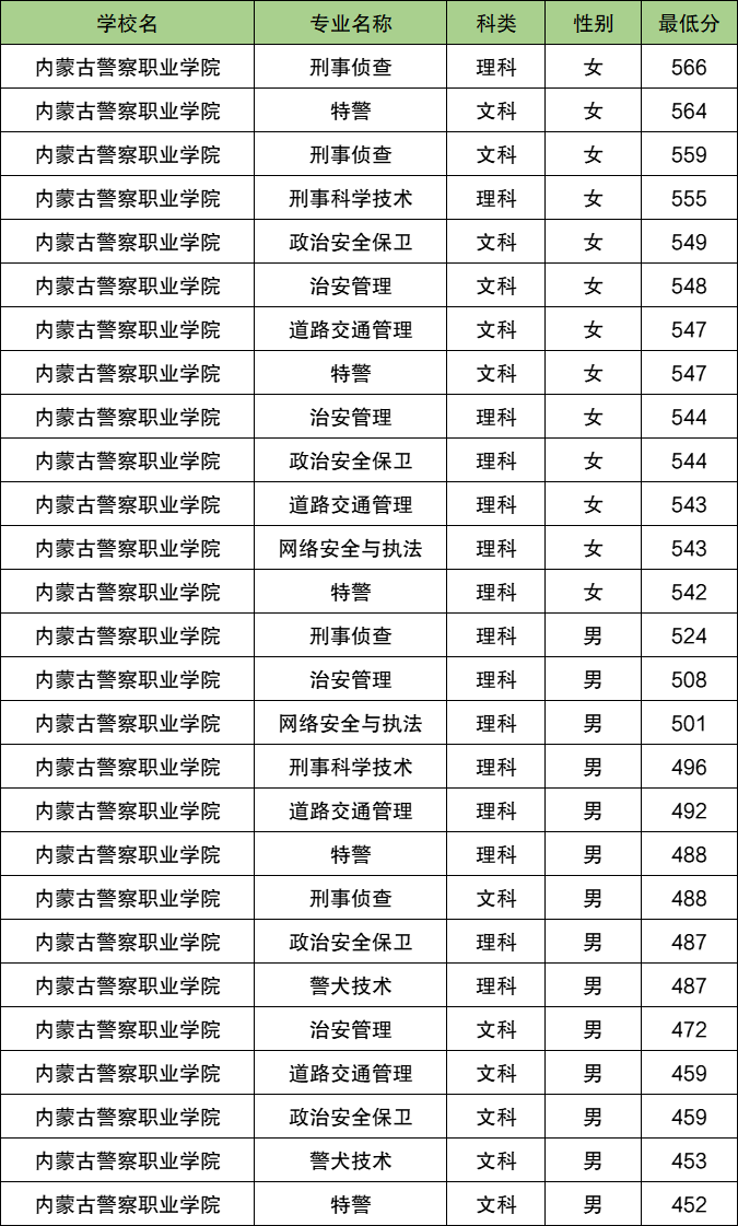 11、内蒙古警察职业学院:在内蒙古文科最低452分、理科最低487分。