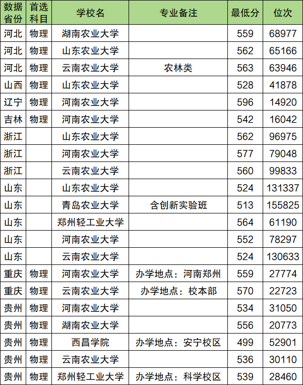 烟草专业大学名单及全国录取分数线及位次一览表如下: