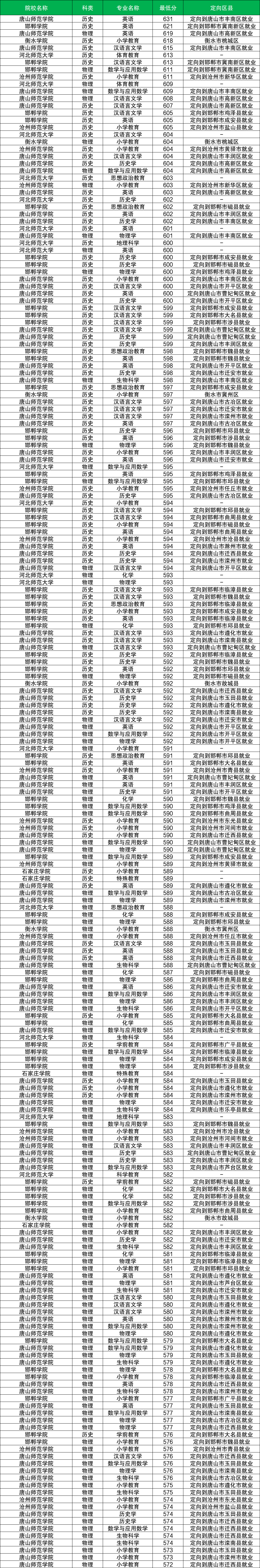 二、河北地方公费师范生2025年录取分数线参考