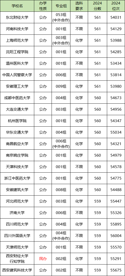 一、物化政560分左右大学一览表