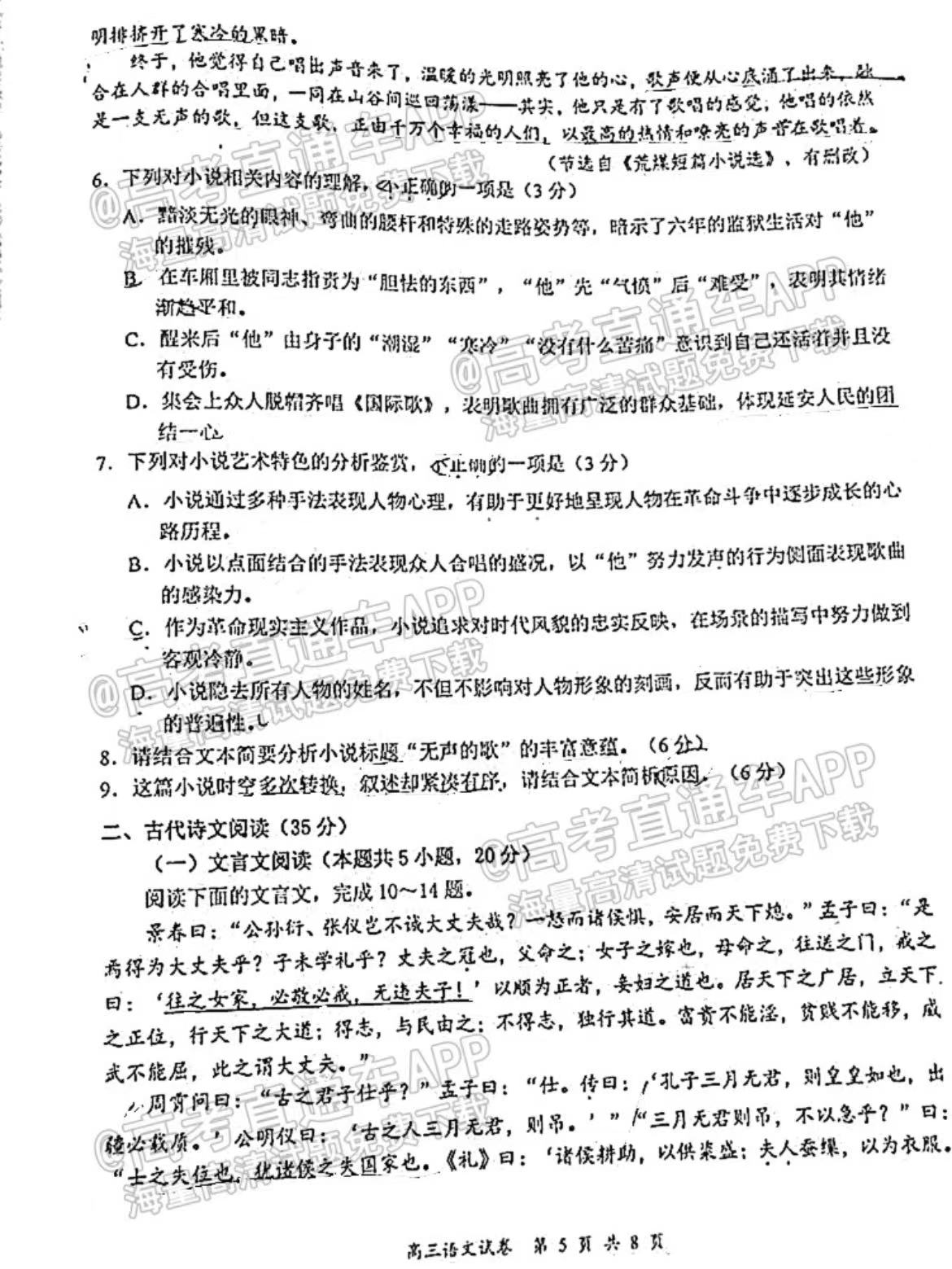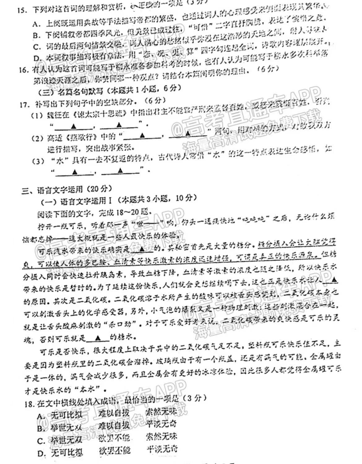 一、2023南京盐城一模语文试卷及答案