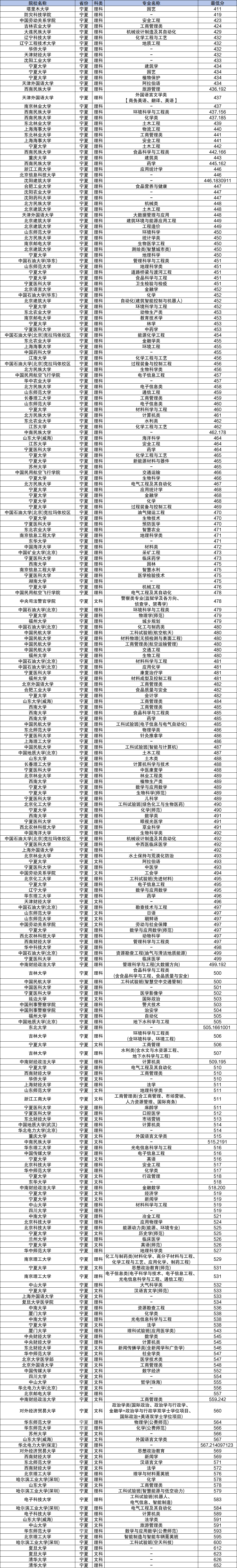 下面是2024年宁夏国家专项计划录取分数线一览表: