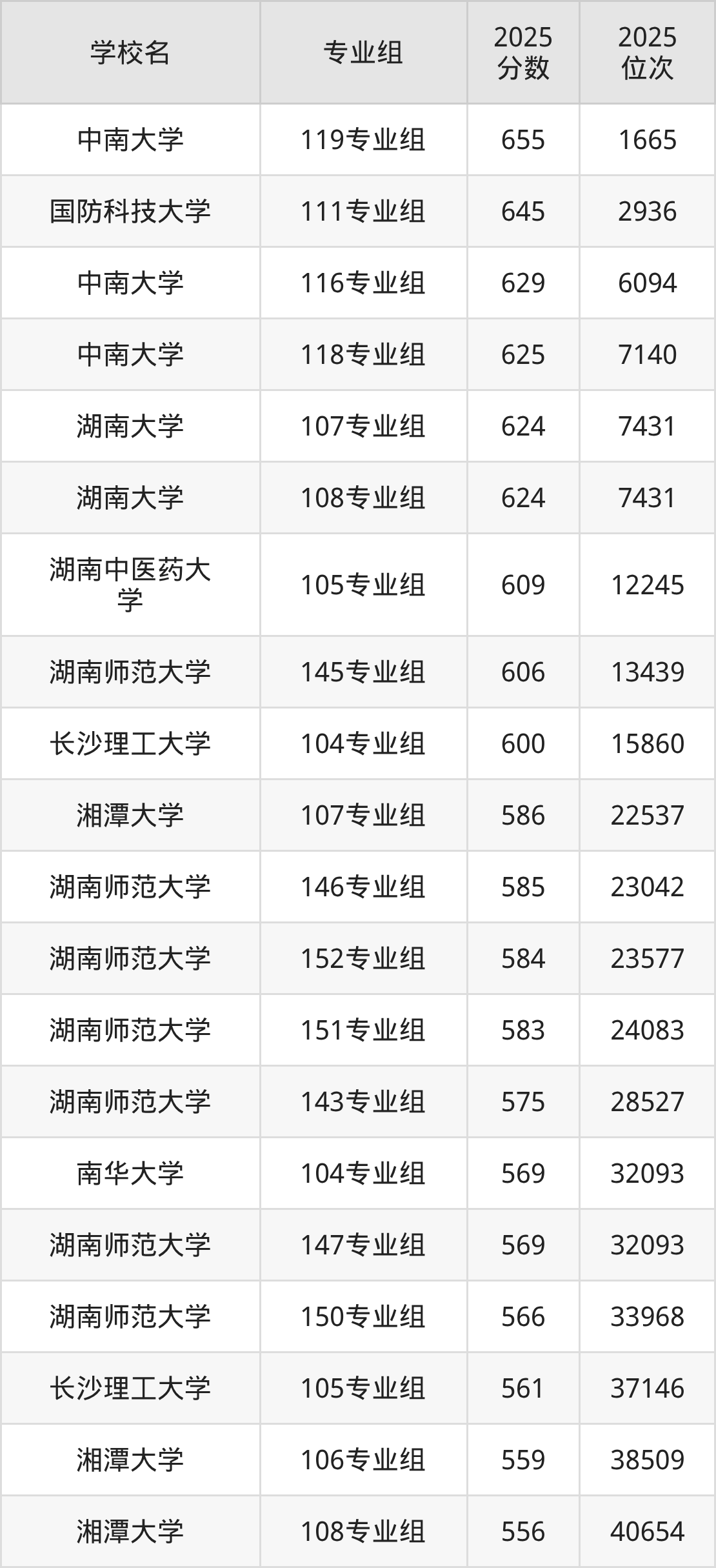 1、中南大学(119专业组655分)