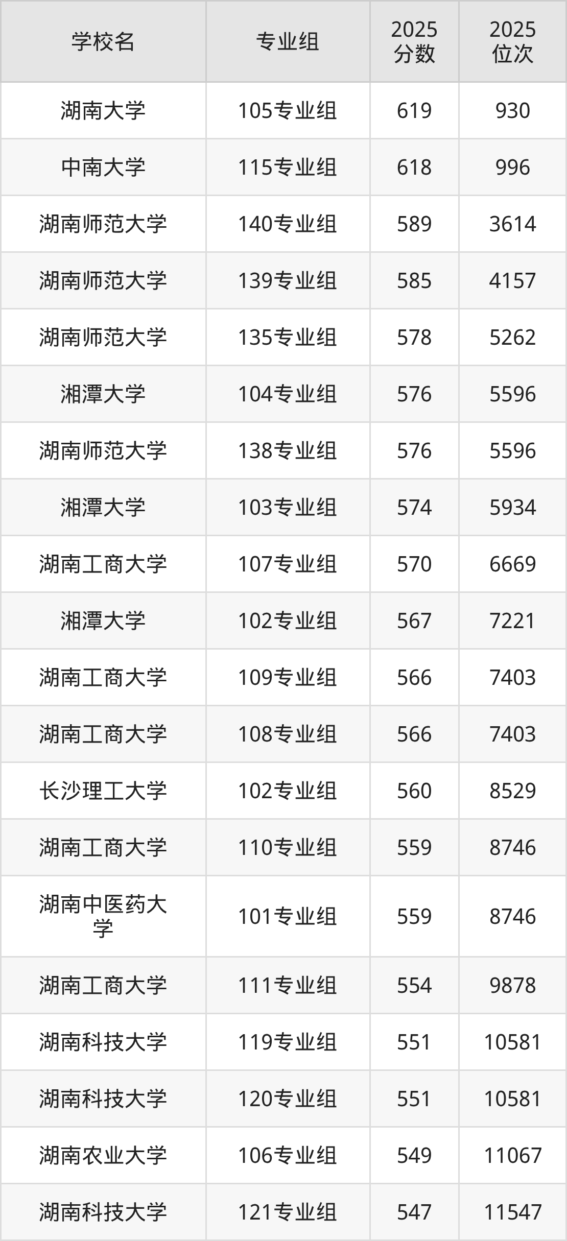 10、湘潭大学(102专业组567分)