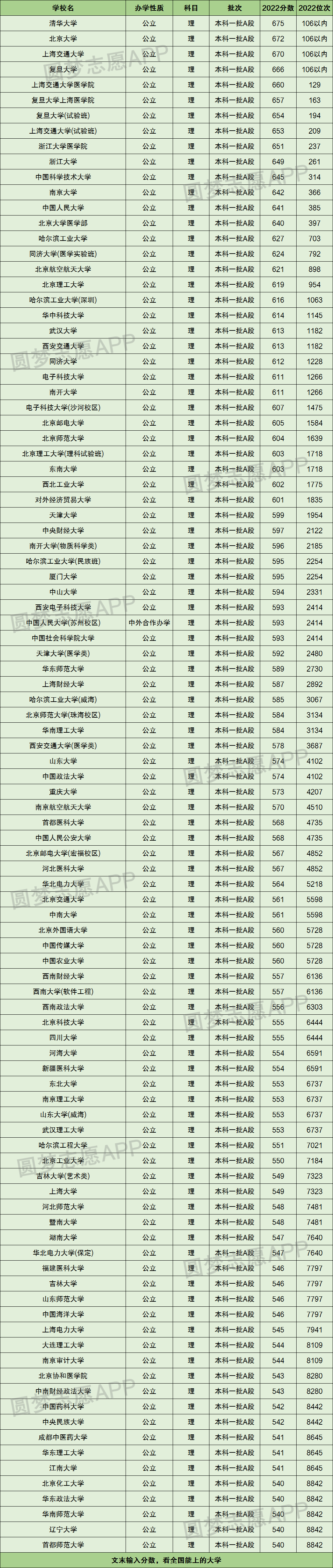 根据2022年全国一本大学在吉林录取分数线及位次排名情况,小编将分数从高至低进行了排序,具体如下表: