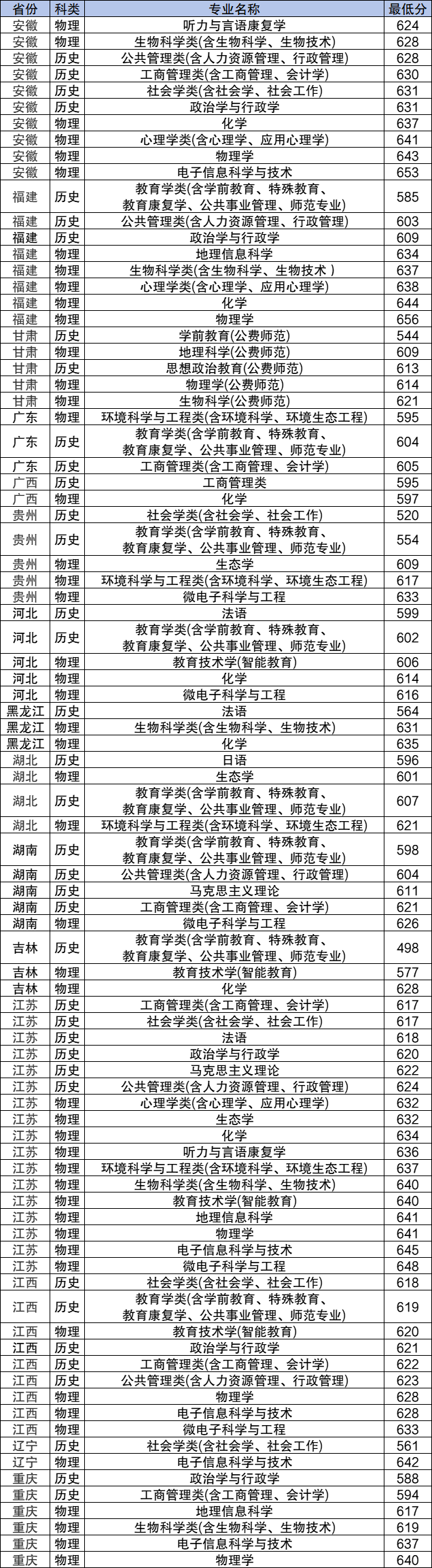 理科:化学(公费师范)556分、地理科学(公费师范)570分