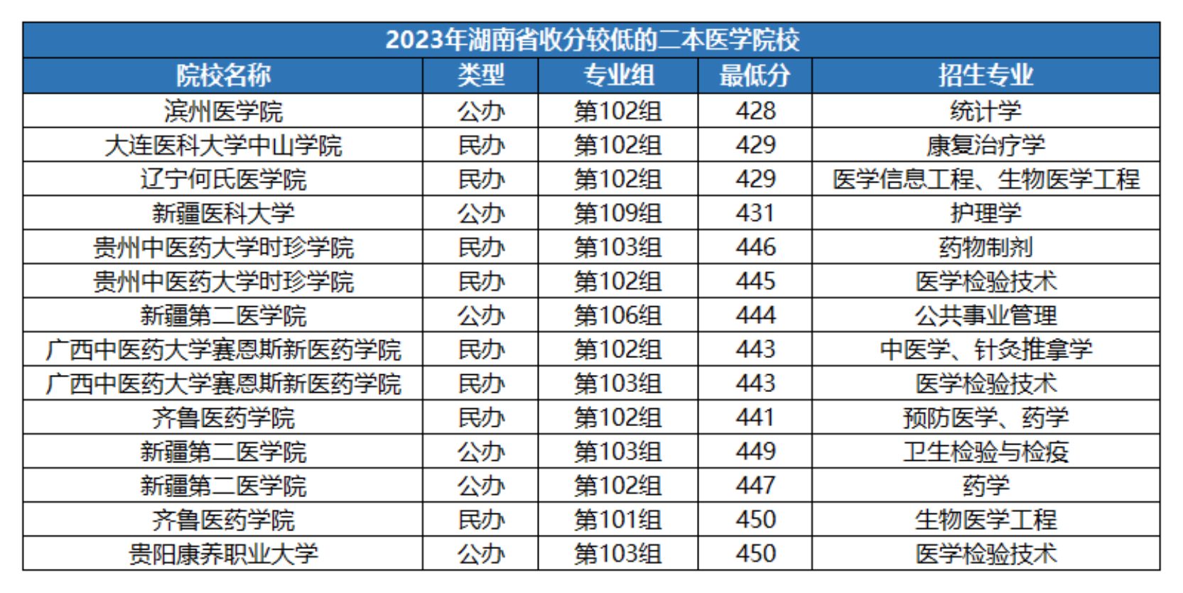 此外小编也给各位考生收集了在湖南物理类收分较低的部分医学院校名单,对于物理类中低分段的考生来说:
