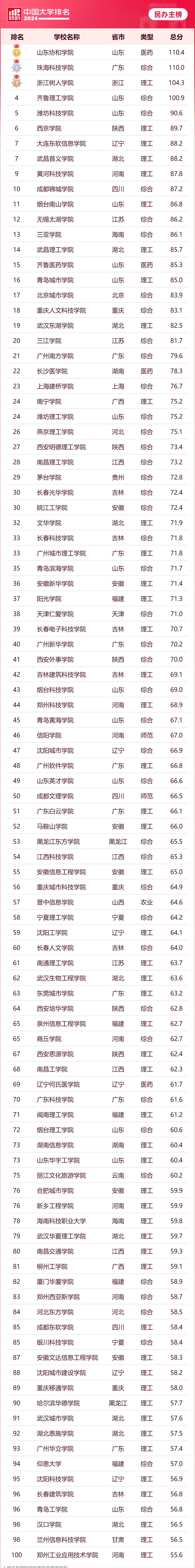 一、2024中国民办本科100强