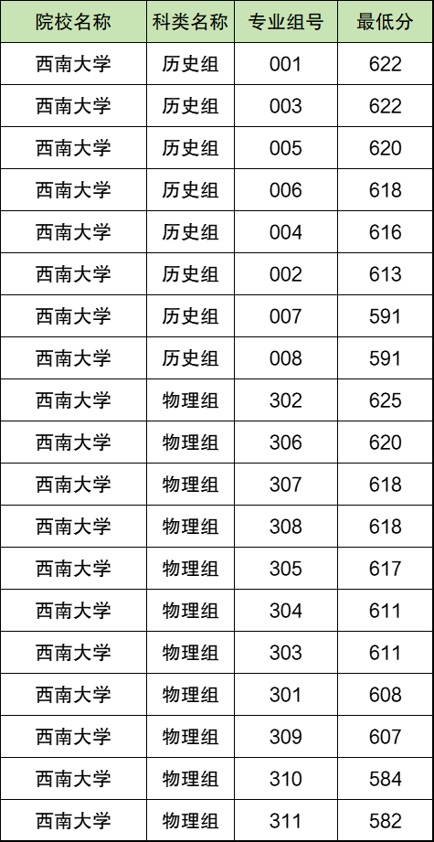 2025年西南大学公费师范生在山西最低录取分数线为:历史类591分、物理类582分。