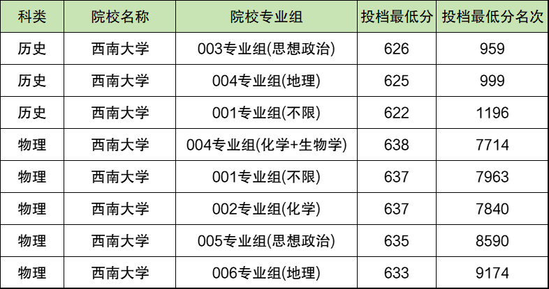 2025年西南大学公费师范生在安徽最低录取分数线为:历史类622分、物理类633分。