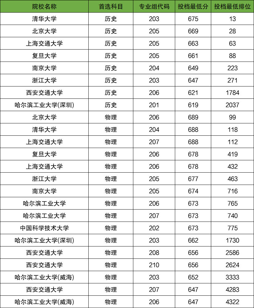 2025年广东省C9联盟历史类最高为675分,录取院校专业组为清华大学203专业组;最低为619分,录取院校专业组为哈尔滨工业大学(深圳)201专业组。