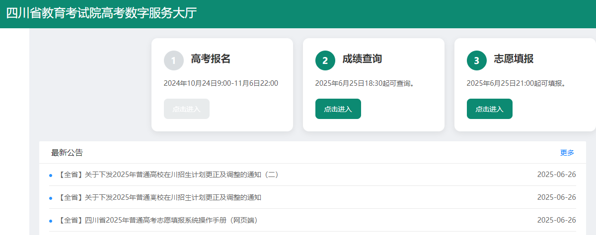 2026高考模拟志愿网上填报入口官网:四川省教育考试院,时间安排在6月11日-15日(2025年时间仅供参考)。