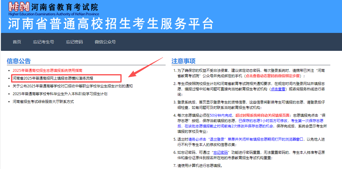 为使考生进一步熟悉网上填报志愿流程,教育考试中心提醒高考考生:6月12日9:00-13日17:00(2025年时间仅供参考),考生登录河南省普通高校招生服务平台进行网上填报志愿再次模拟演练。
