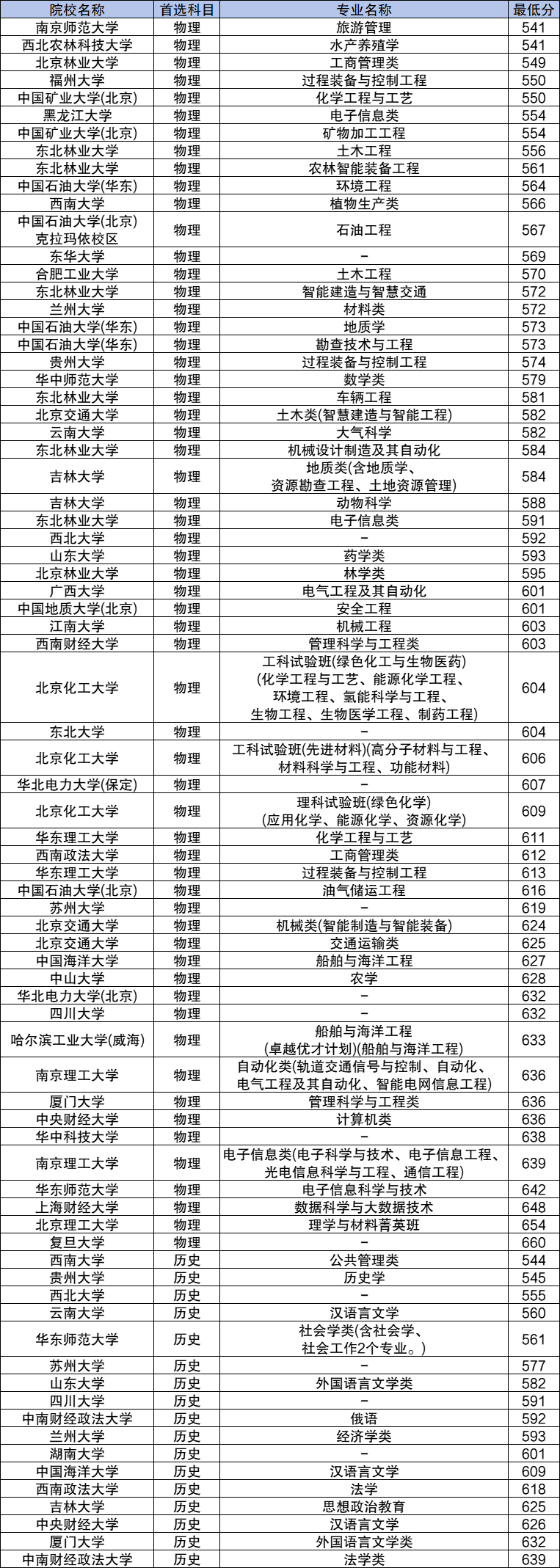 物理类收分最低的是辽宁工程技术大学(土木工程);历史类收分最低的是东北财经大学(国际经济与贸易)。