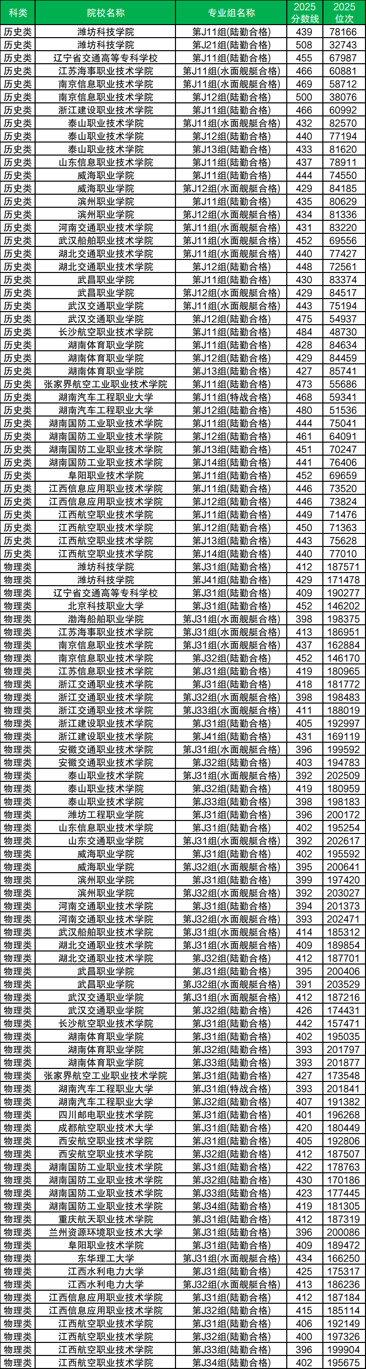 2025年江西定向士官录取分数线范围在391分-508分之间,历史类最低分院校是湖南体育职业学院(第J13组),2025年最低投档分为427分。即历史类考生分数超专科线137分有机会被录取。