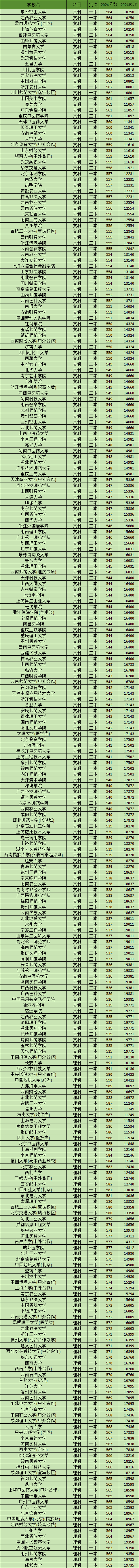 | 西安财经大学 | 文科 | 574 | 7776 |