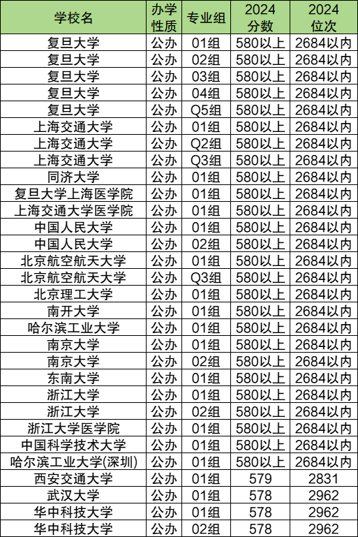 本科各大学最难考的、分数最高的学校是:哈尔滨工业大学(深圳)01组、中国科学技术大学01组、浙江大学医学院01组等(580分以上、2684名以内)。