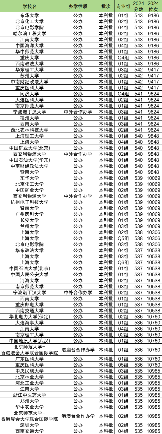 因为全国大学在上海招生的数据较多,本文就只整理出2024年本科大学在上海录取分数线前30强名单,以及上海高考1万名左右对应的院校专业组名单。