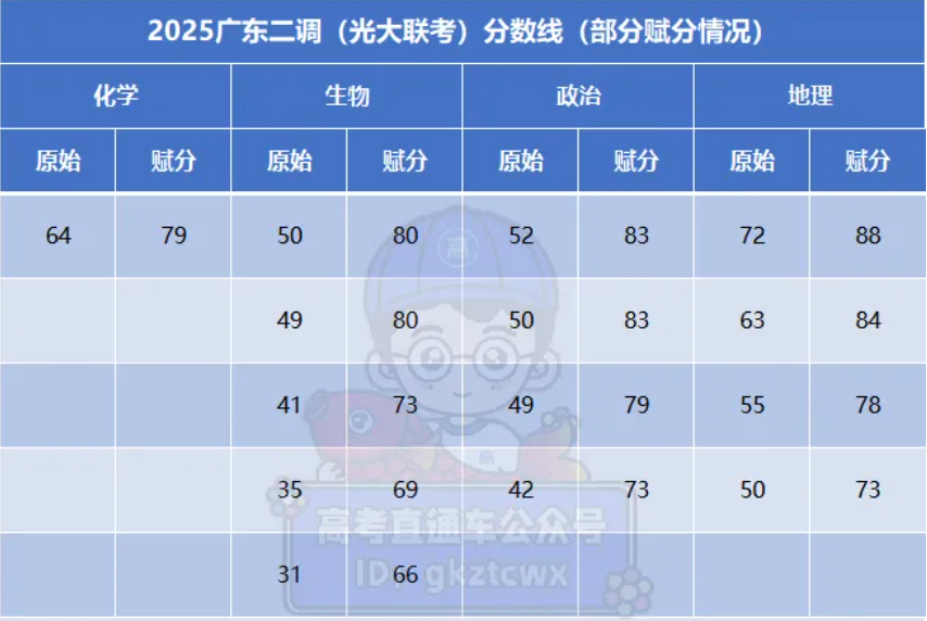 二、2026广东二调(光大联考)赋分表