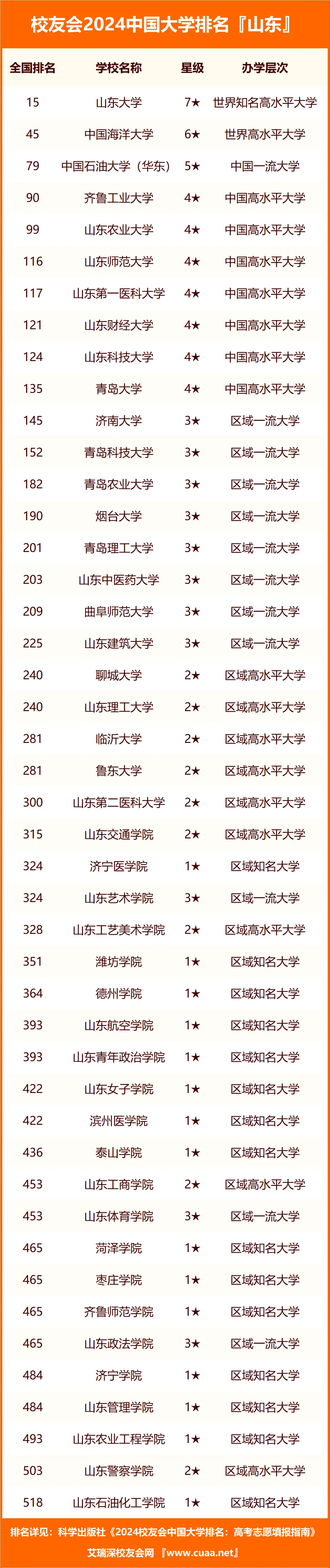 以下为中国45所山东的公办本科大学最新排行榜一览表: