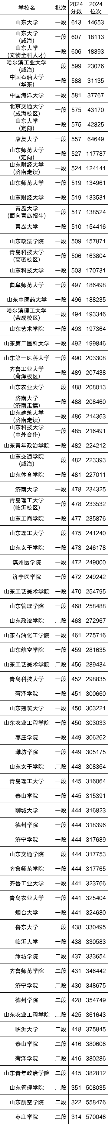 下面是2024年各山东的公办本科大学在山东省的录取分数线(供参考):