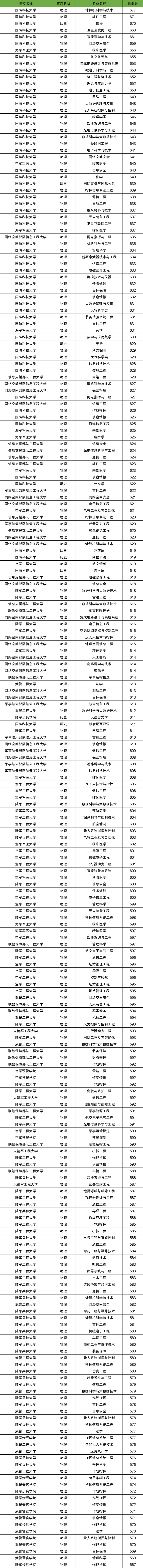 3、网络空间部队信息工程大学:物理类最低608分。