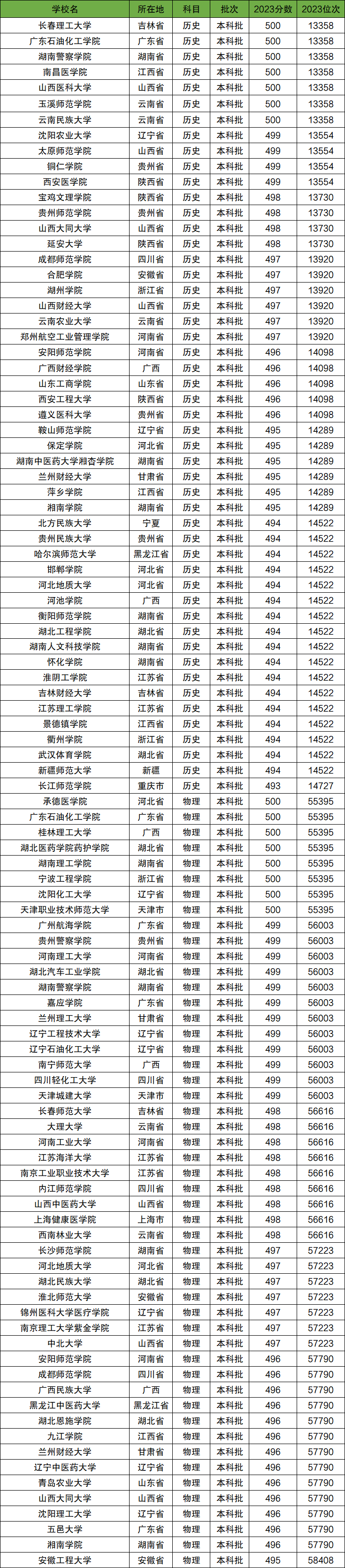 (省内在历史类450-500分招生的大学共计20所,本文篇幅有限,只列举10所大学。)