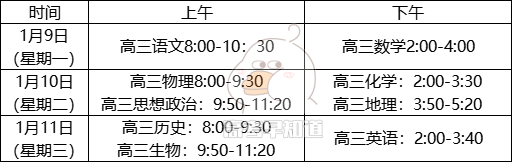 枣庄市高三期末考试时间:2023年1月9日-1月12日。
