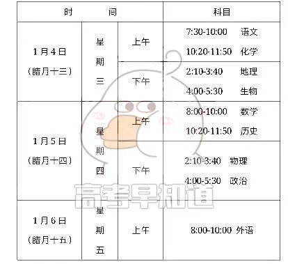 二、高三上学期期末考试时间安排