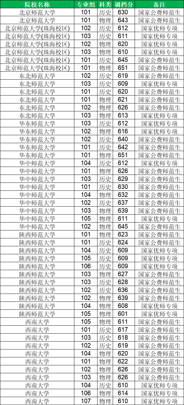下面是2025年四川国家公费师范生分数线一览表(含优师专项):