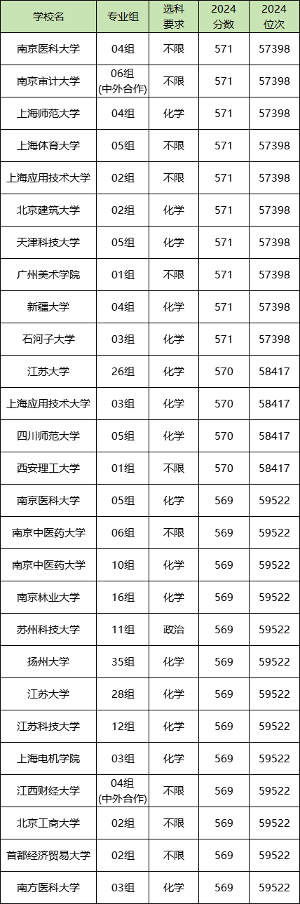 江苏物化政570分的考生能上本科大学,均为公办大学,有南京医科大学04组(571分)、江苏大学26组(570分)、北京工商大学02组(569分)等。具体名单如下表所示: