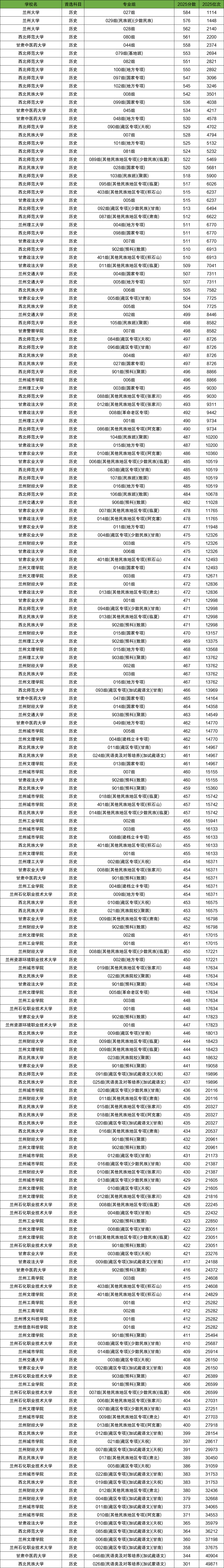 2025年兰州本科各大学专业组录取分数线(历史类):