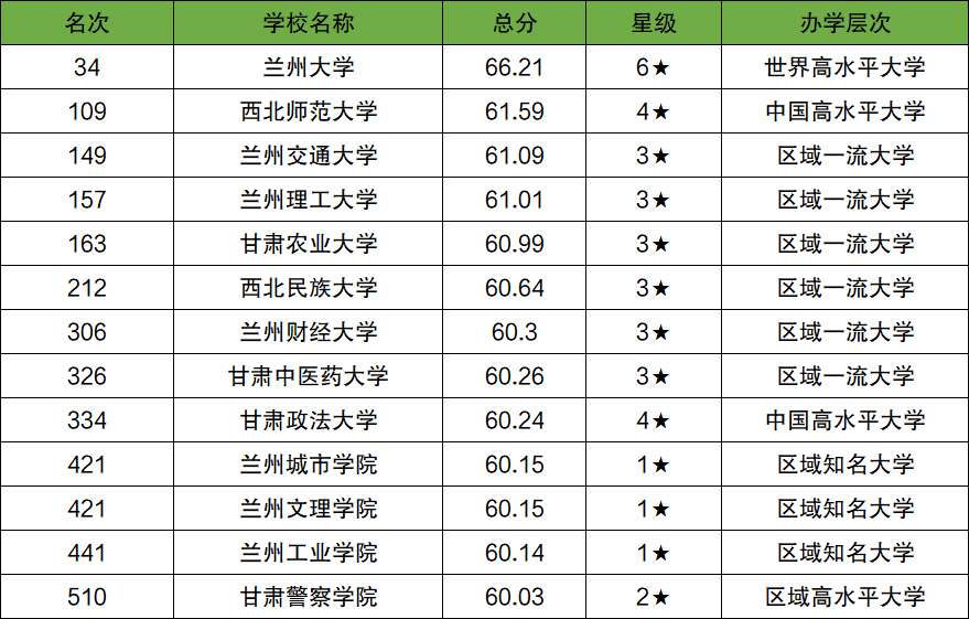 一、兰州各大学排名