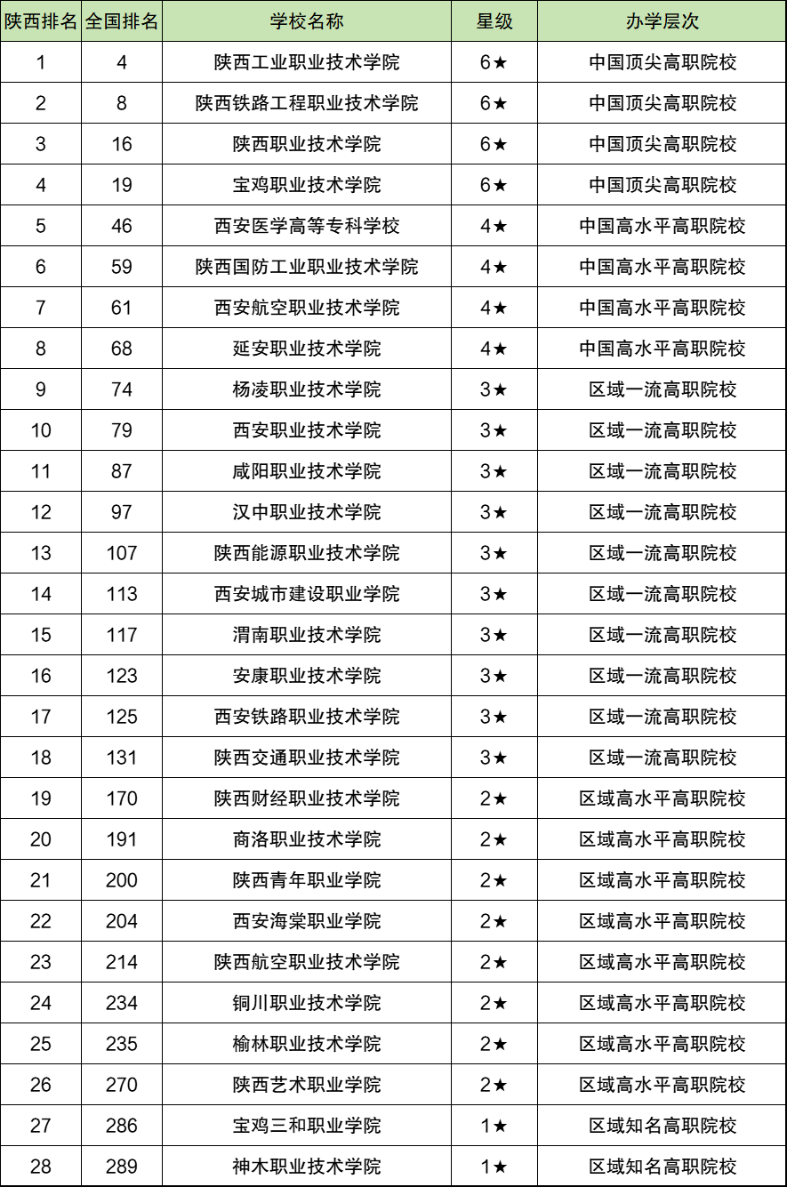 在选择院校时,院校的综合实力排行榜也是考生可参考的因素,本文就参考2025年校友会高职院校排行榜,整理出陕西公办大专院校排名。