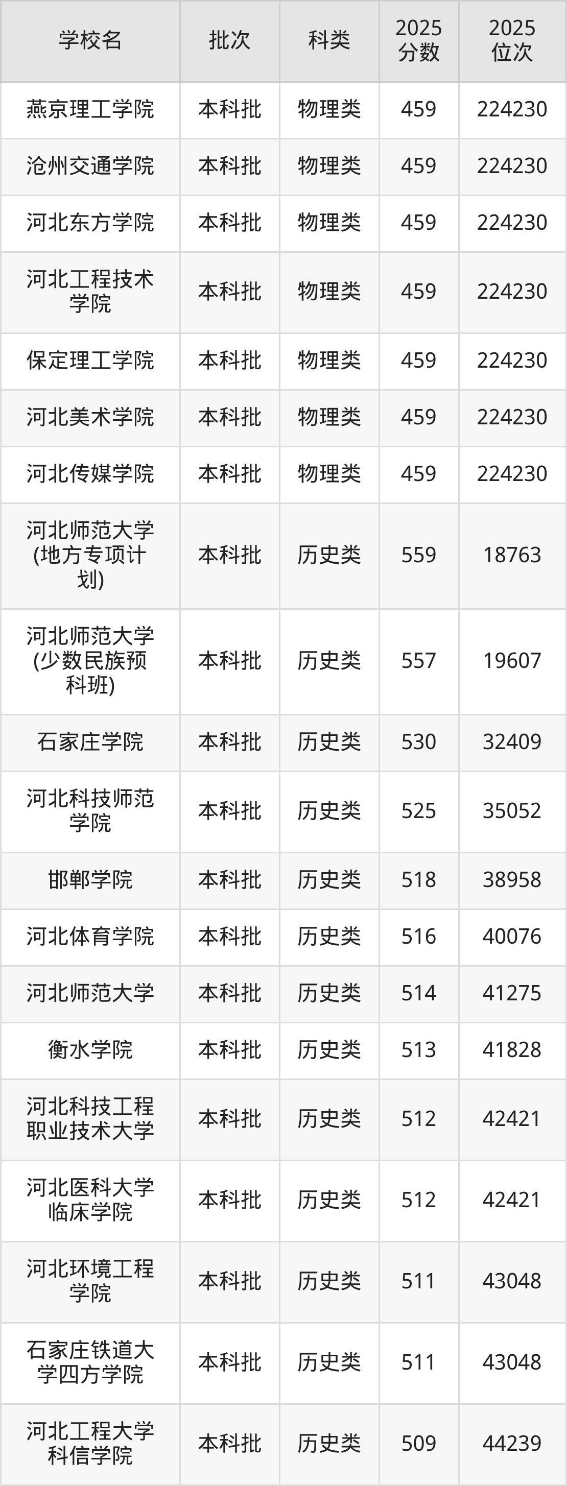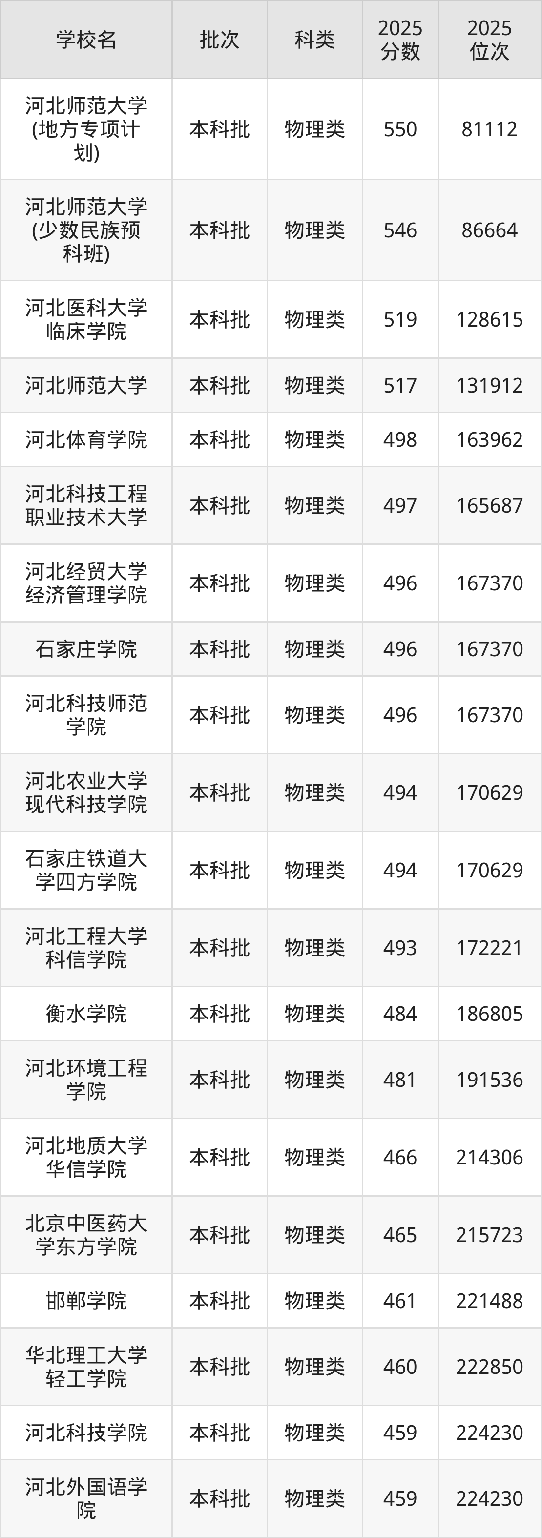 注:2025年河北物理类特控线499分、本科线459分。