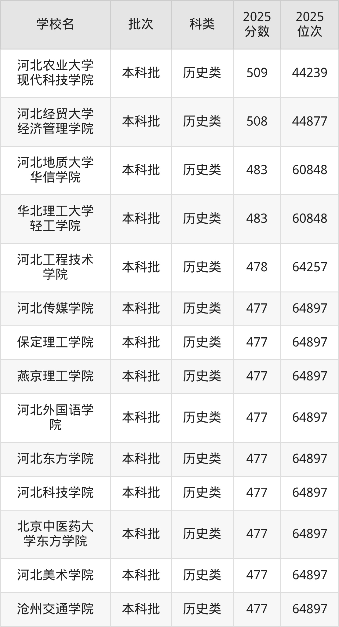 二、河北二本大学2025年录取分数线