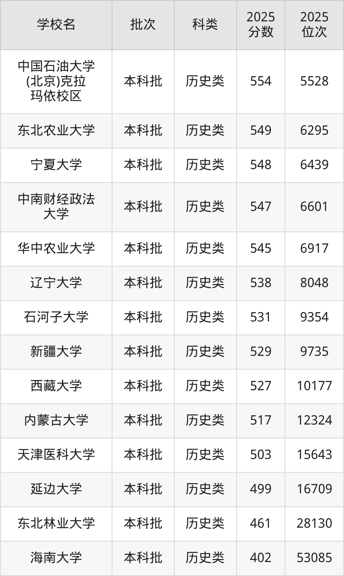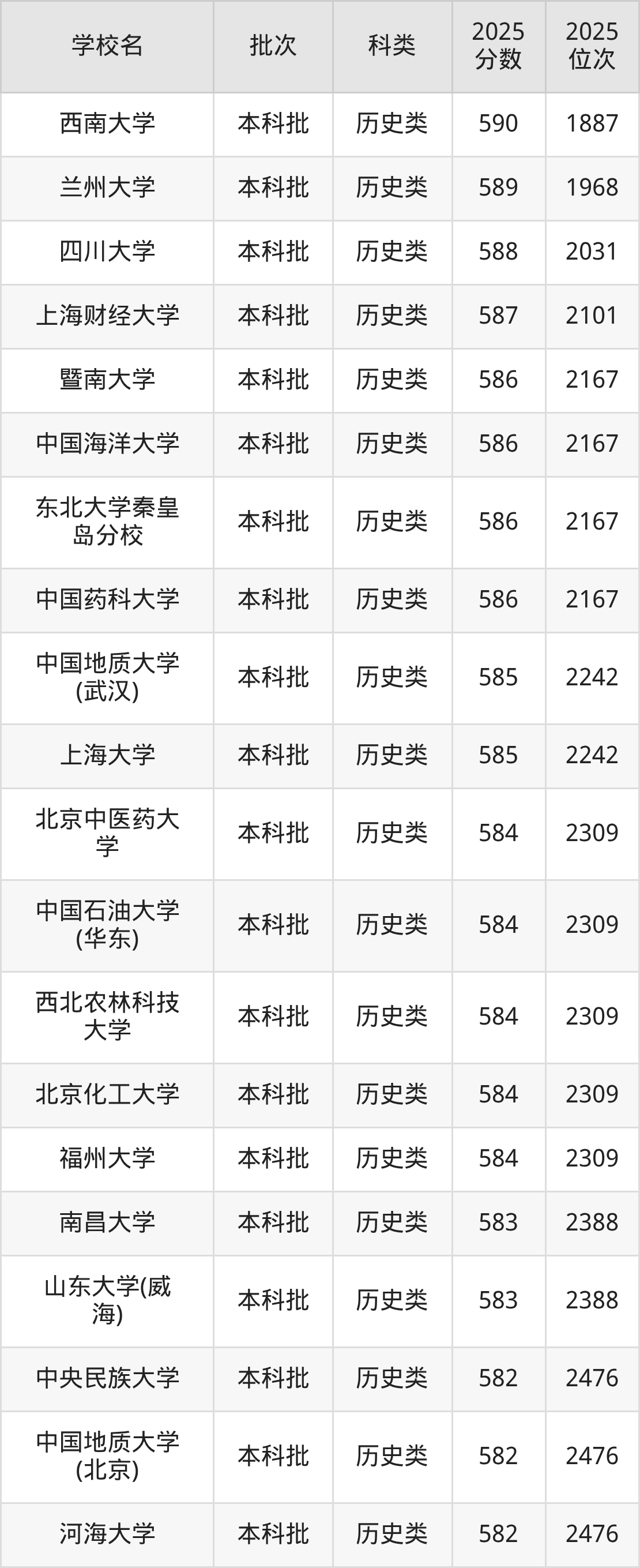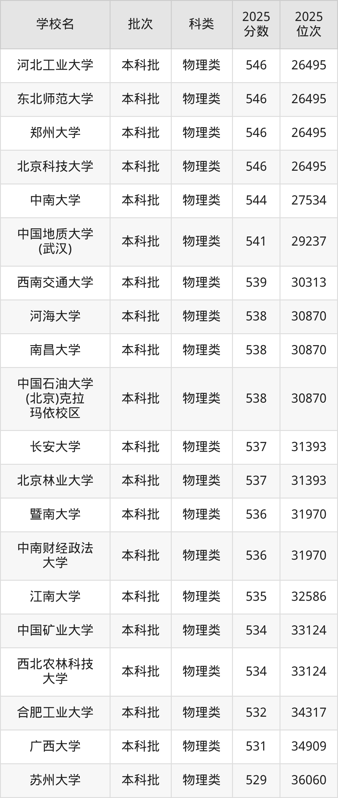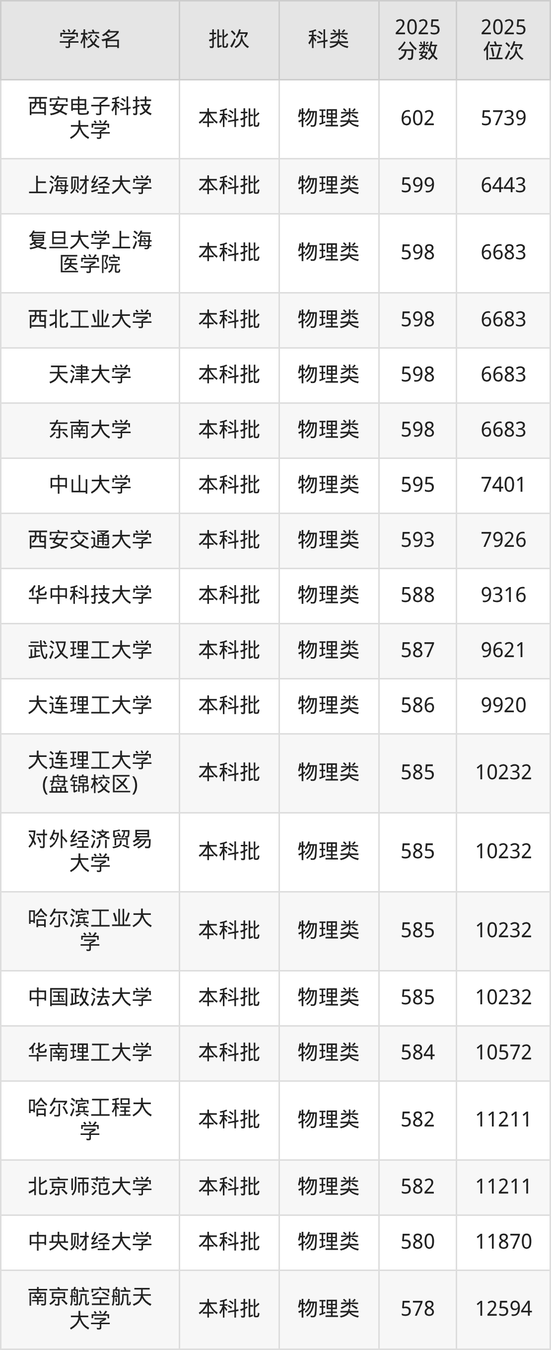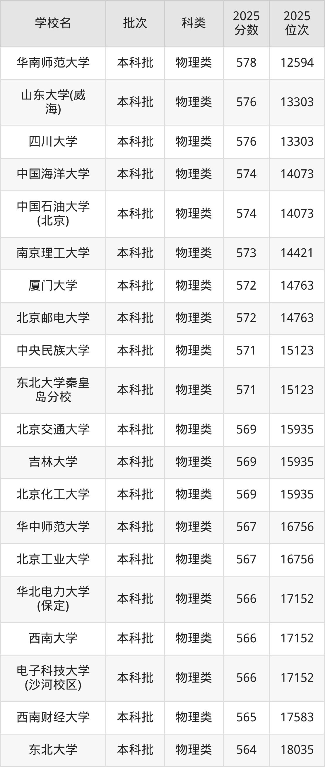 注:2025年广西物理类特控线495分。区内院校数量较少,以下数据取自全国所有211大学在广西的招生录取数据。