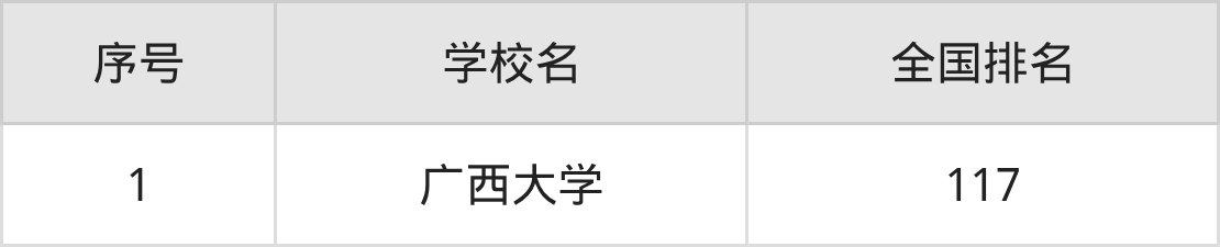 | 1 | 广西大学 | 广西壮族自治区南宁市 |