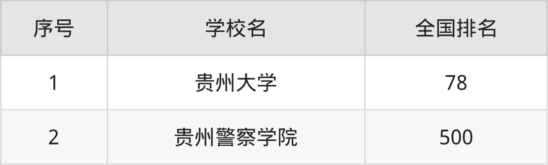 本文以校友会2026年大学全国排名为参考依据,列举贵州省内一本大学的全国排名情况,其中排名前2的是: