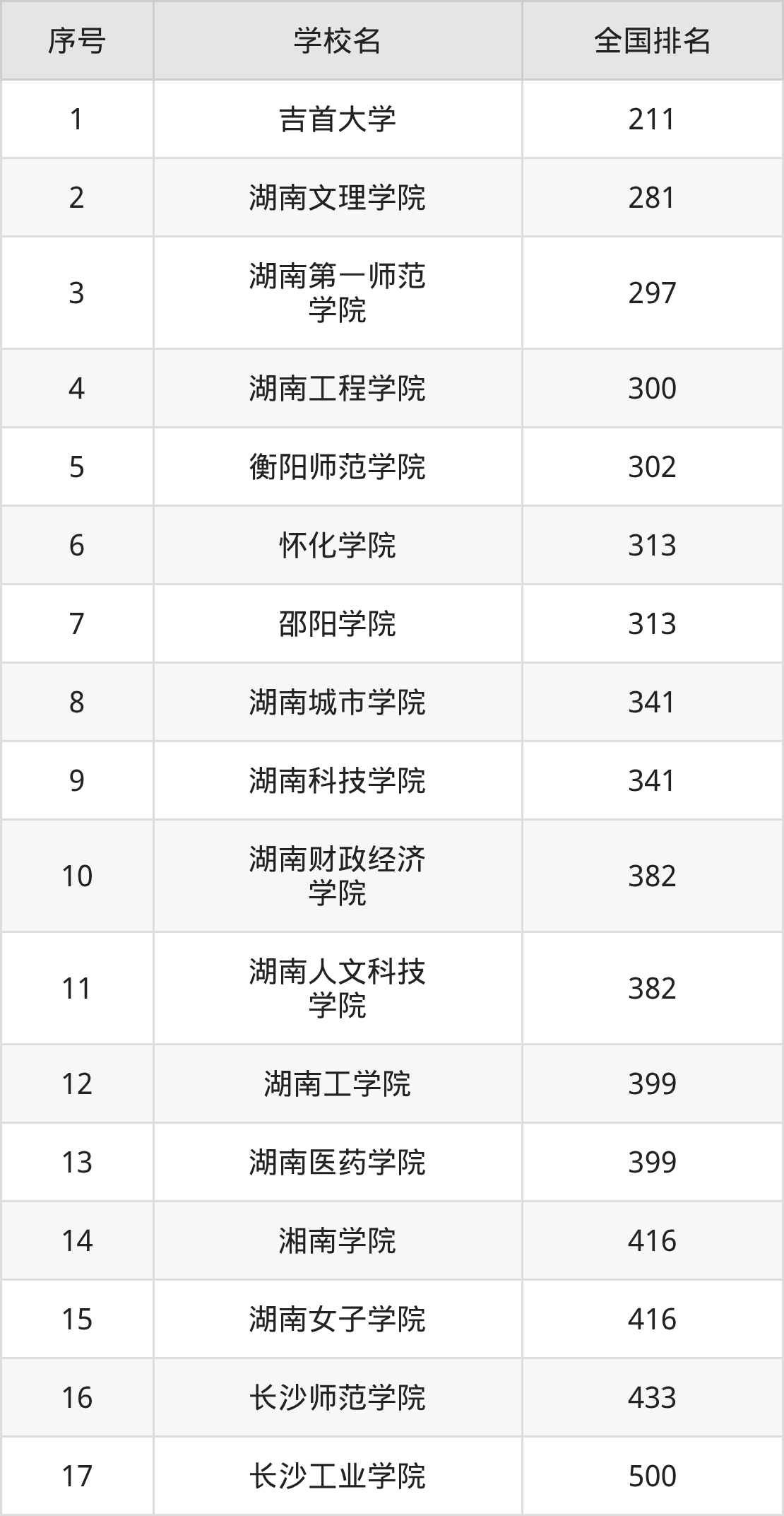 下面是湖南省二本大学最新排名一览表,供参考(部分院校未参与排名):