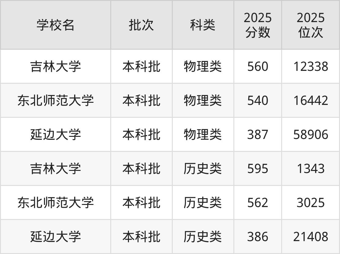 二、吉林双一流大学2025年录取分数线