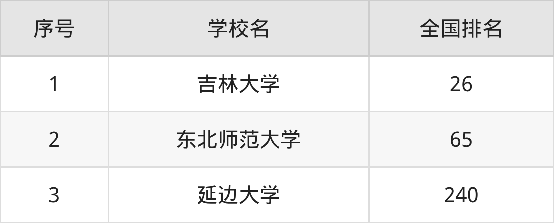 本文以校友会2026年大学全国排名为参考依据,列举吉林省内双一流大学的全国排名情况,其中排名前3的是: