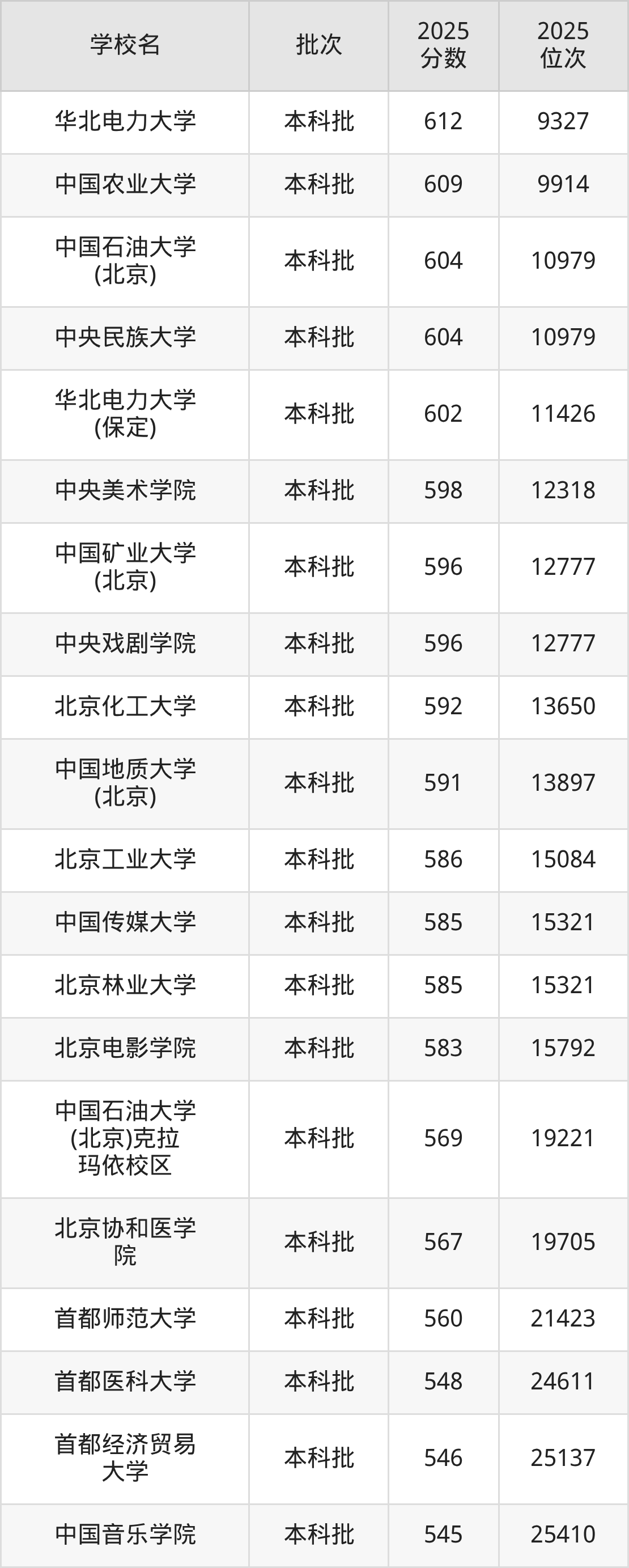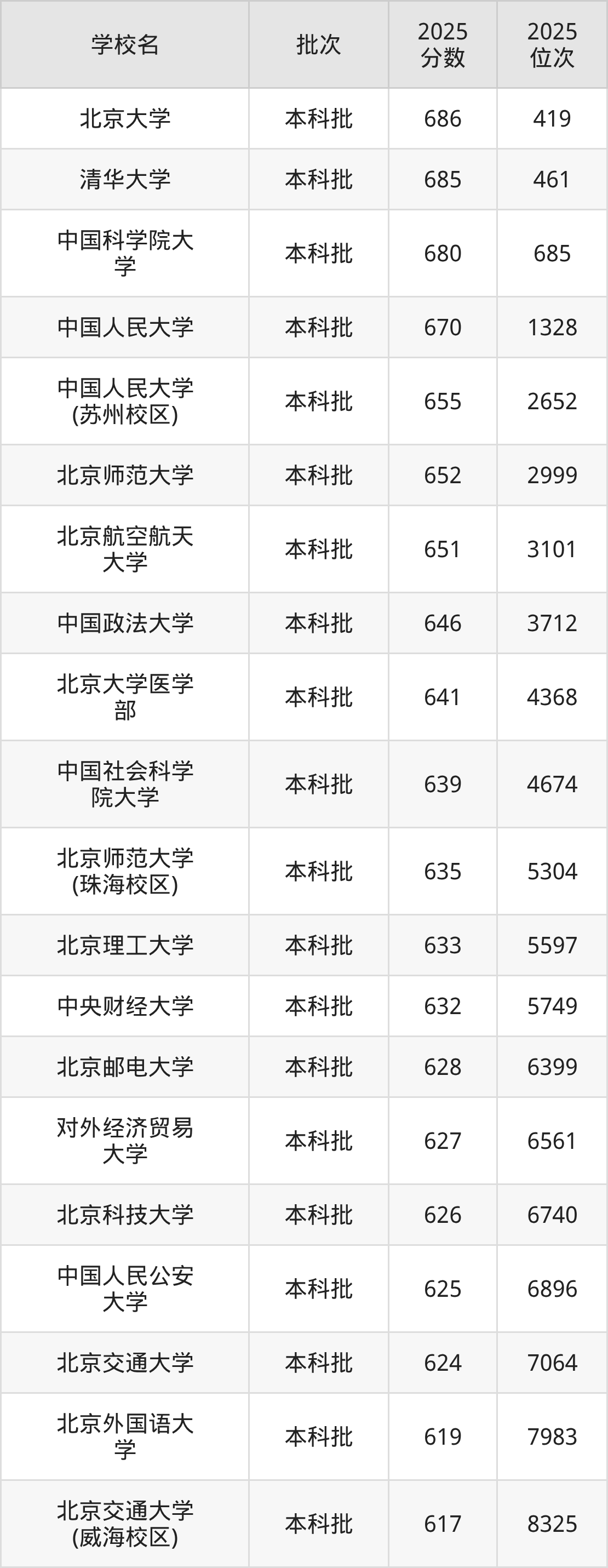 二、北京一本大学2025年录取分数线