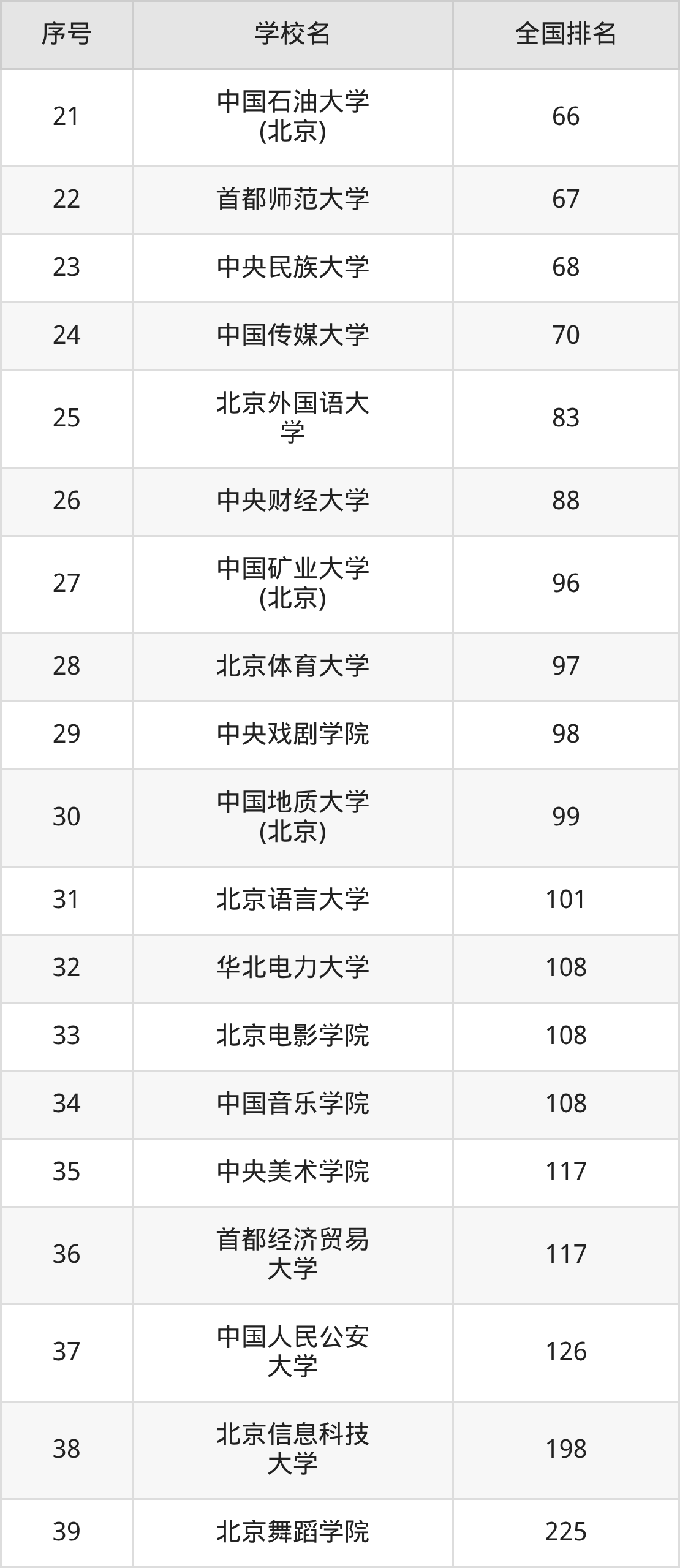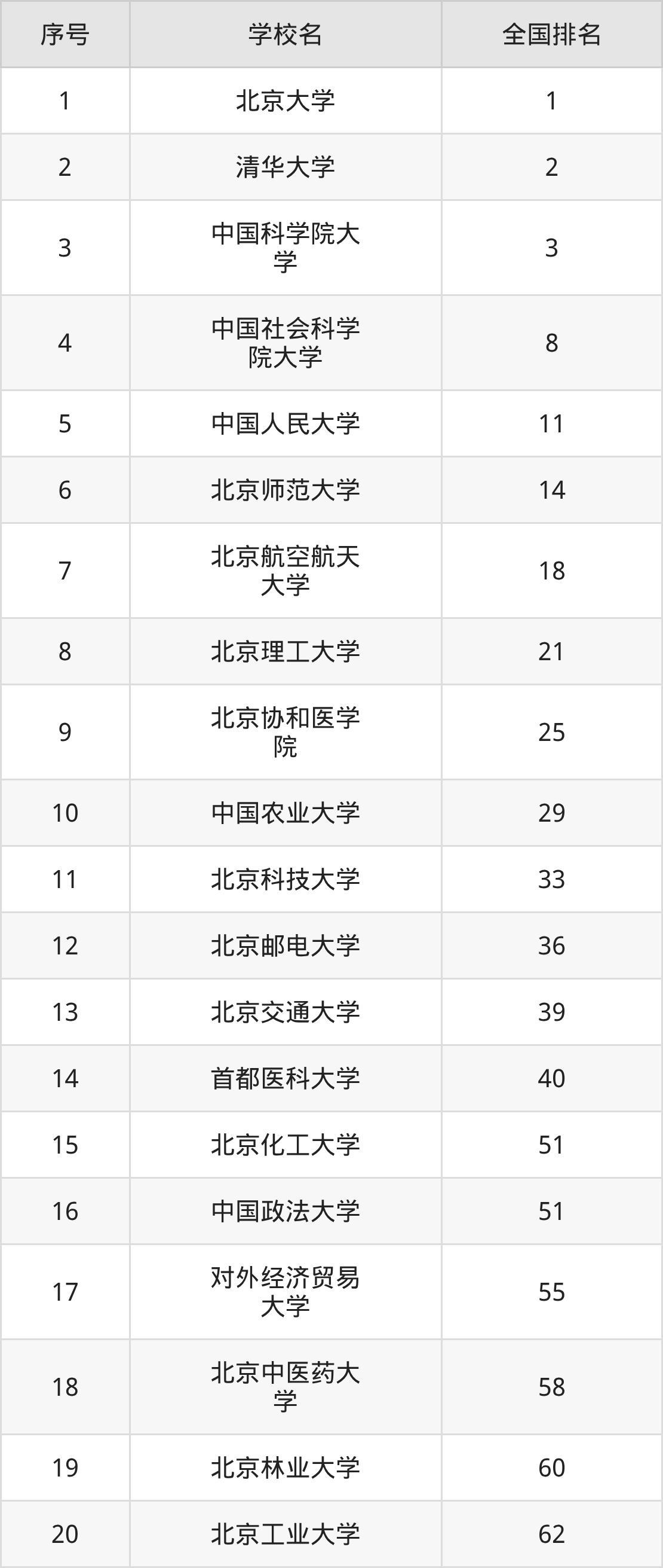 三、北京市一本大学最新排名