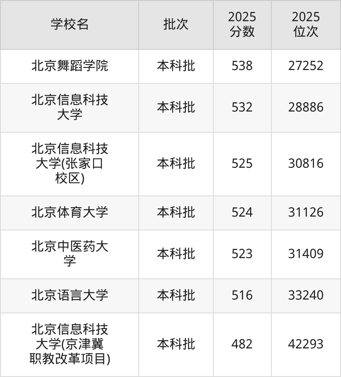 注:2025年北京特控线519分、本科线430分。