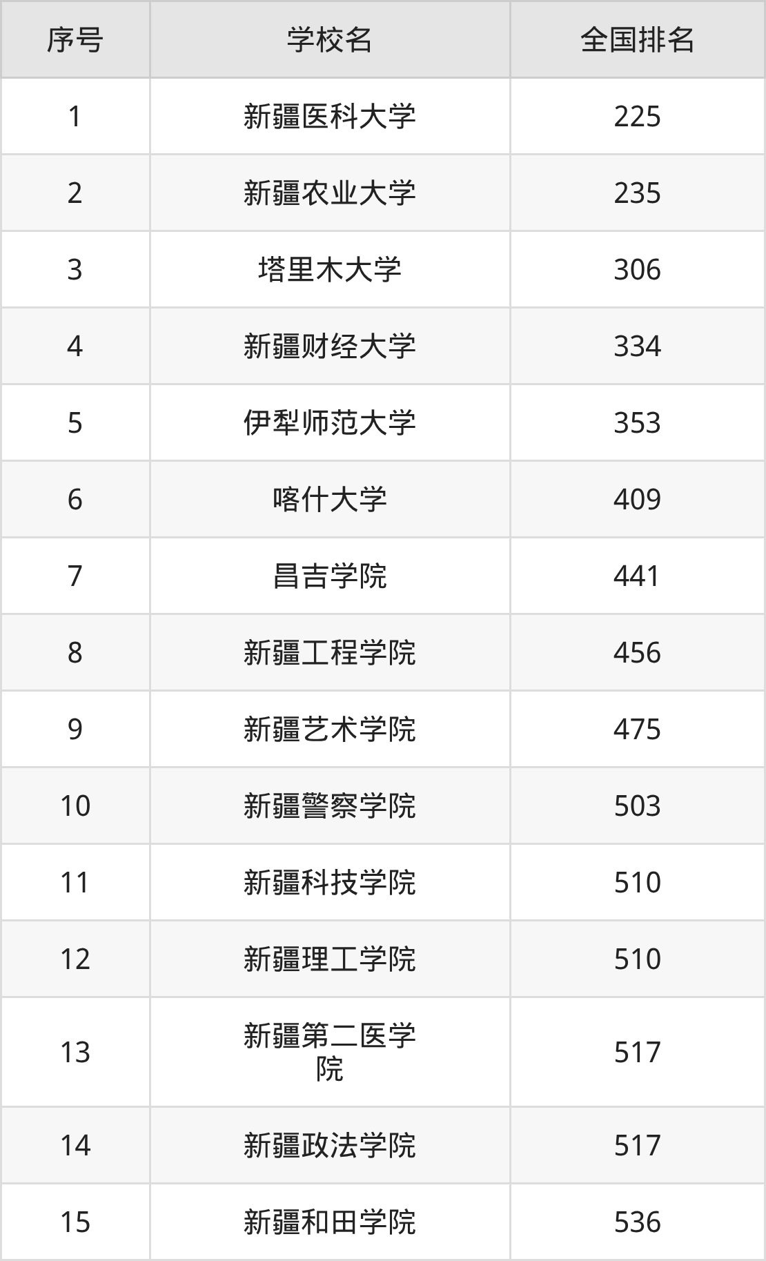 1、新疆医科大学:2025年排全国第225名;