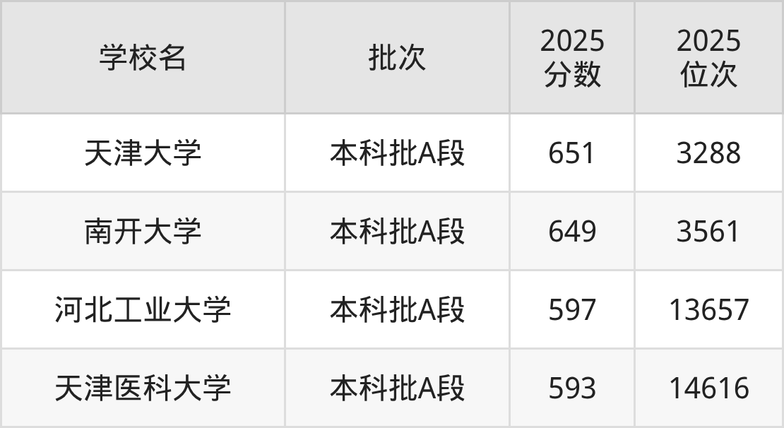 天津市211大学包括南开大学、天津大学、天津医科大学、河北工业大学。2025年天津211大学分数较低的有天津医科大学(593分)。